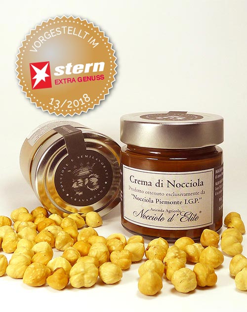 Haselnusscreme aus 58% besten piemonteser Haselnüssen (Tonda Gentile delle Langhe IGP)