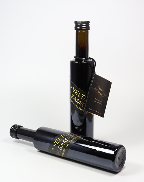 VELTSAM+ ist ein milder Weinbalsamessig mit extra Traubenmost, der sich durch ein perfekt ausgewogenes Verhältnis von Düße und Säure auszeichnet.