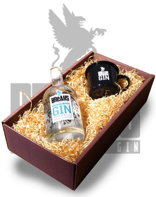 Preis je Set 500ml Premium Gin + Breaks Emaille-Tasse in der Präsent-Box