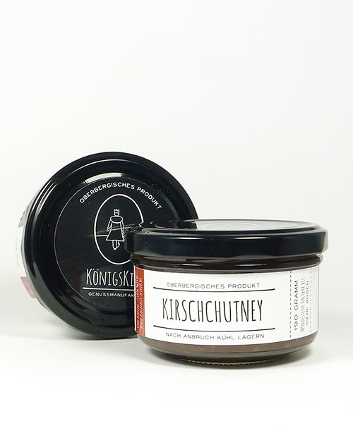 Das köstliche Kirschenchutney von der Genussmanufaktur Königskind aus dem Oberbergischen ist ein toller Begleiter zu Käse, ganz besonders zu gebackenem Camembert.