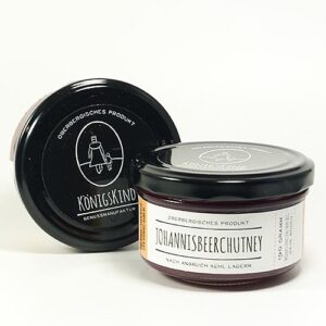 Das köstliche Johannisbeer-Chutney mit etwas Pfiff kommt von der Genussmanufaktur Königskind aus dem Oberbergischen. Es ist ein toller Begleiter zu einem intensiven Käse, köstlich auch zu Gegrilltem, Fleisch- und Wildgerichten. Vorzüglich zu Scampis/Garnelen vom Grill.