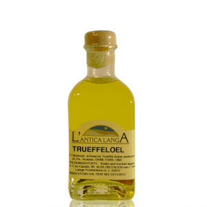 Unser Trüffelöl kommt von L´Antica Langa aus Alba im schönen Piemont. Olivenöl mit schwarzem Sommertrüffelstückchen und einem hochwertigen Trüffelaroma aromatisiert.