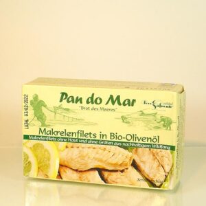 In kaltgepresstem, nativem BIO-Olivenöl extra eingelegte Makrelenfilets aus Galizien (Spanien)
