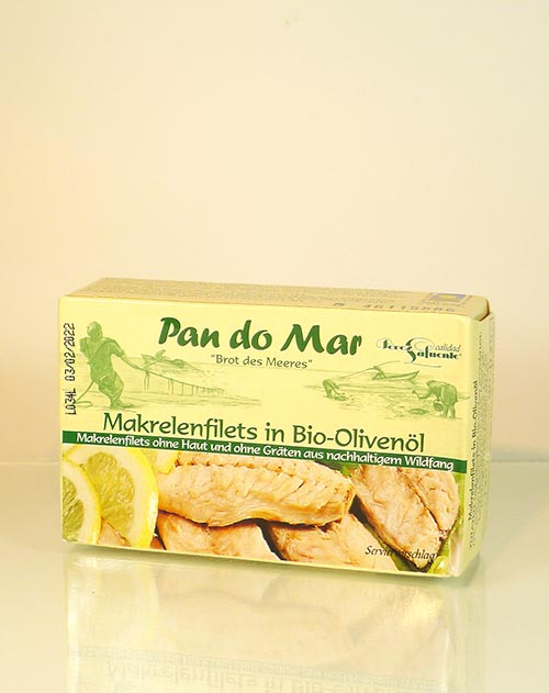 Diese Makrelen (Scomber scombrus) stammen aus nachhaltiger und kontrollierter Angel-Fischerei. Sie werden von Küstenfischern im Atlantik vor der Nordküste Spaniens mit der Leine gefangen (FAO Gebiet 27.VIII.c/ Atlantik vor der Nordküste Spaniens). Sie sind von Hand filetiert und werden dann in nativem BIO-Olivenöl extra aus erster Kaltpressung eingelegt. Diese Makrelen sind von ausgezeichneter Qualität und das schmeckt man!