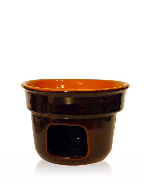 Der Fojòt ist das klassische Steingut-Stövchen, mit dem die Bagna Cauda am Tisch warm gehalten wird. Die Maße dieses kleinen Fojòt: Durchmesser 133 mm, Höhe 90 mm