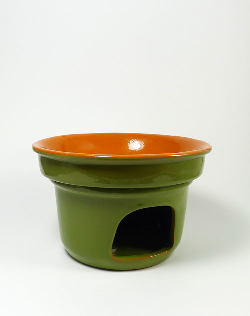 Der Fojòt ist das klassische Steingut-Stövchen, mit dem die Bagna Cauda am Tisch warm gehalten wird. Die Maße dieses kleinen Fojòt: Durchmesser 145 mm, Höhe 95 mm