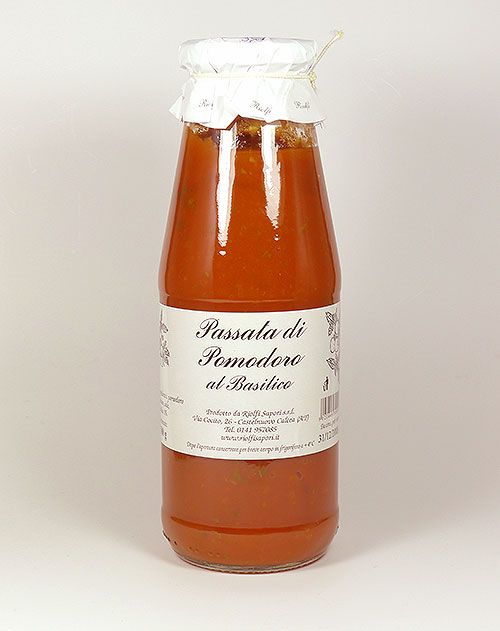 Aus vollreifen passierten italienischen Tomaten, verfeinert mit gehacktem Basilikum und einer Prise Salz. Eine perfekt Basis für Ihre Fleischsaucen, Tomatensuppen oder zum Verfeinern verschiedener Speisen.