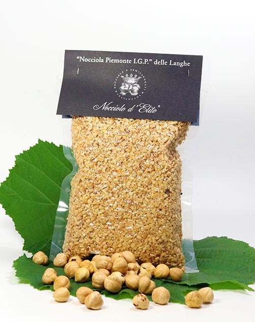 Diese herrlichen gerösteten und gehackten Haselnüsse kommen von einem Familienbetrieb im kleinen Dorf Cravanzana bei Alba, der seit über 50 Jahren diese hochwertigen Nocciole Piemonte IGP “Tonda Gentile delle Langhe” anbaut.