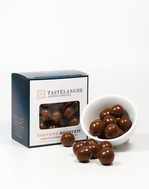 Geröstete Haselnüsse (Nocciole Piemonte I.G.P. ) in Vollmilch-Schokoladen-Hülle