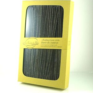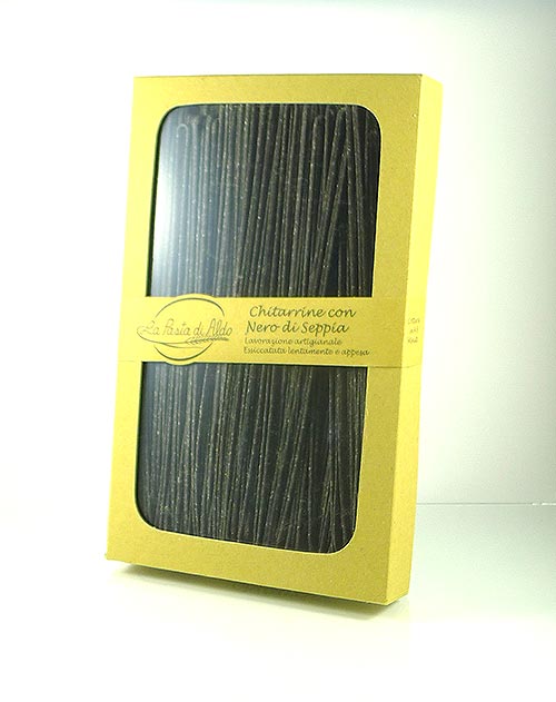 "La Pasta di Aldo" ist mehrfach prämiert, ein führender italienische Weinführer, bekannt unter dem Namen "Gambero Rosso", hält sie für die beste Italiens! Diese italienische Gourmet-Pasta ist eine Eiernudeln mit ca. 2 mm Breite und werden von "La Pasta di Aldo" liebevoll hergestellt. Nach dem Kochen ähneln sie im Format den Spaghetti. Das besondere an den Chitarrine con Nero di Seppia ist natürlich die schwarze Farbe, für die dem Teig echte Tintenfischtinte hinzugefügt wurde.