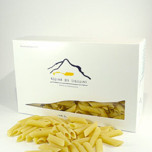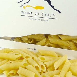 Die “Azienda Regina dei Sibillini” produziert Nudeln nach handwerklichem Verfahren: die Pasta wird durch Bronze gezogen und dann bei niedrigen Temperaturen schonend getrocknet. Es wird nur Weizen verwendet, der in Höhen von 600 bis 900 m Meereshöhe in Mitten des Nationalparks Monti Sibillini angebaut wurde.