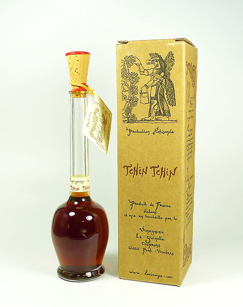 “Tchin Tchin” (“Tschin-Tschin”) ist ein vorzüglicher Dessertessig, der aus Banyuls Weinessig – Banyuls ist einer der besten Süssweine Frankreichs – und dem Most aus der grauen “Grenache gris” Trauben hergestellt wird und anschließende in alten Eichenfässern reift. Die kleine Essigmanufaktur “La Ginelle” stellt ihn nach der Methode der Balsamico-Herstellung her. Tchin Tchin ist ein junger Balsamico.