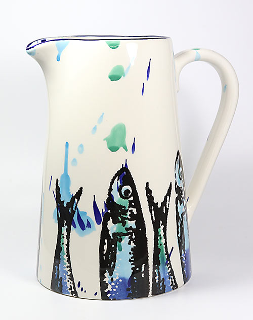 Große Wasserkaraffe “Sardinen” mit Farbtupfern