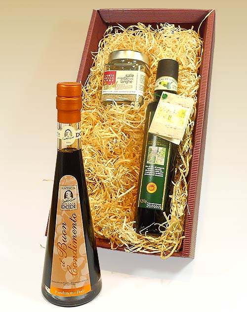 BIO-Olivenöl und eine Kräutersalzmischung aus Sizilien & Balsamico aus Modena: