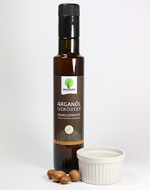 Das Arganöl des kleinen Familienbetriebes “Mansuris” wird aus den Samen des Arganbaumes gewonnen und in Marokko traditionell von den Berberfrauen hergestellt.