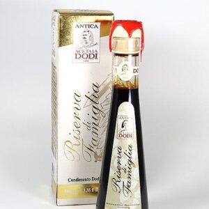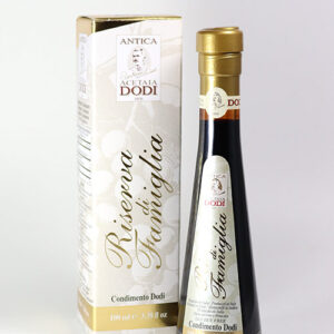 Ein Balsamessig von allerbester Qualität. Mit seinem sehr harmonischen Aroma wertet er den Geschmack ettlicher Speisen auf. Der „Riserva die Famiglia“ ist sehr dickflüssig und deshalb auch eine Freude für’s Auge.