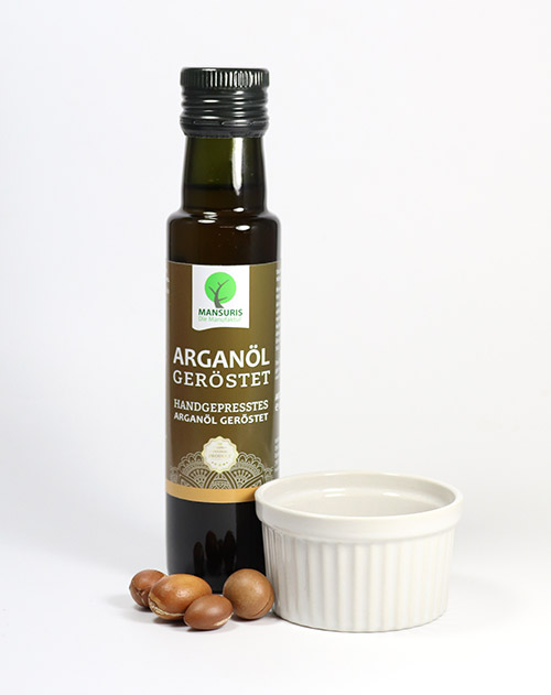 Das Arganöl des kleinen Familienbetriebes "Mansuris" wird aus den Samen des Arganbaumes gewonnen und in Marokko traditionell von den Berberfrauen hergestellt.