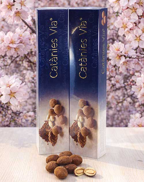 Im kleinen Örtchen Vilafranca del Penedès in Katalonien (Spanien) entsteht eine exquisite, sehr traditionelle katalonische Spezialität: die Catánies Via! Das sind karamellisierte Marcona-Mandeln, die von einer Schicht aus cremiger weißer Schokolade umhüllt sind und anschließend in Kakao gewälzt werden.