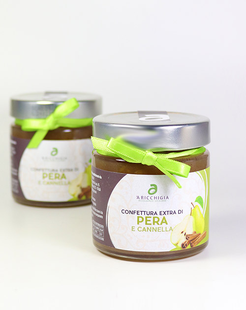 A’Ricchigia macht auf Sizilien aus den reifen Früchten eine Birnenkonfitüre, die ihresgleichen sucht. Holen Sie sich die Sonne Sizilien auf Ihr Brot! Wunderbar süß und fruchtig ist die Confettura extra di Pera e Canella ein Gedicht auf dem Frühstückstisch.Aber auch zu Nachspeisen, zum Füllen von Gebäck oder zur Herstellung von Eiscreme wird sie nicht nur in Sizilien gerne verwendet. Ein Genuss der ganz besonders leckeren Art!