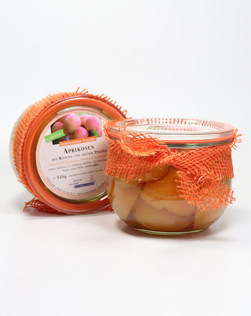Genießen Sie vollaromatische französische Aprikosen, eingemacht mit Riesling und grünem Pfeffer als feines Früchtedessert oder als Zugabe zu Joghurtcremes und Quarkspeisen. Oder gerne auch als Beilage zu Ihren eigenen raffinierten kulinarischen Kreationen. Ein Idee wären Wraps mit Hähnchenbrust. Hier kommt das Rezept: