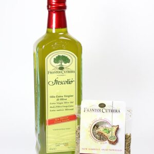 Leuchtend grün präsentiert sich das Frescolio – das frische Olivenöl der neuen Ernte 2025. 12 Stunden nach der Ernte schonend kalt gepresst. Für die Familie Cutrera ist es der Lohn nach einem Jahr harter Arbeit in den Olivenhainen. Unfiltriert, naturtrüb, pur – einfach herrlich und eine Freude über jeder Speise! Zuerst streichelt Ihren Gaumen eine dezente Bitternote, bevor Sie im Abgang eine leicht peffrige Schärfe spüren. So muss es sein, das Frescolio! Ein echtes Geschmackserlebnis und ein überzeugender Vorbote für das Olivenöljahr 2025/26.