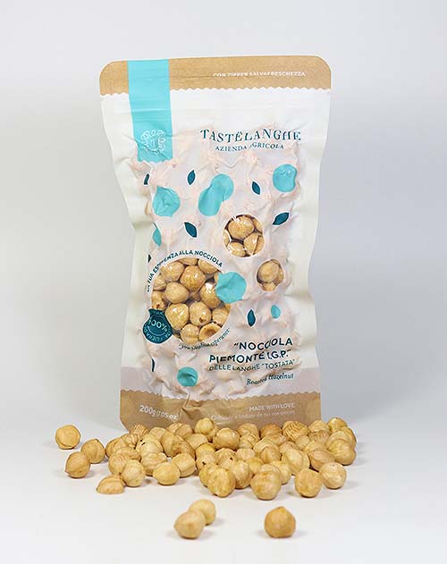 Diese herrlichen Haselnüsse kommen von einem Familienbetrieb im kleinen Dorf Somano südlich von Alba. Hier werden seit 1891 hochwertige Haselnüsse der Sorte “Tonda Gentile delle Langhe” anbaut. Die “Nocciola Piemonte I.G.P. tostata” sind geröstete „Tonda Gentile Trefoil”-Haselnüsse – eine wahre Königin unter den Nüssen. Sie kommen aus Alta Langa im schönen Piemont und erlangten zu Recht weltweiten Ruhm als eine der besten Nuss-Sorten überhaupt.