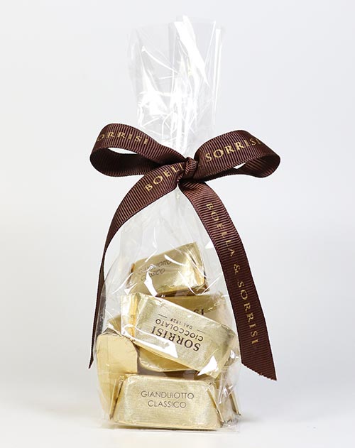 Gianduia sind herrliche piemonteser Nougat-Pralinen, eine Spezialität aus Turin. Das volle Aroma dieses erstklassigen Praline entfaltet sich, wenn Sie die Gianduiotti bei Zimmertemperatur genießen und sie langsam im Mund schmelzen lassen.