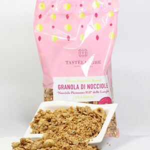 Das Haselnuss-Granola von Tastelanghe aus dem Piemont wird nur mit Agavesirup gesüßt. Starten Sie mit einem gesunden und leckeren Frühstück in den Tag! Verwenden Sie das Haselnuss-Granola mit frischer Milch und frischem Obst, als Topping auf einem sommerlichen Obstsalat, in Ihrem Joghurt oder genießen Sie es pur als Knabberei zu jeder Tageszeit.