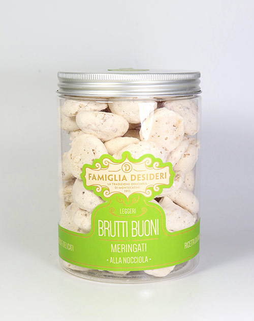 Diese “Brutti Buoni” in der Meringen-Variante sind ein ganz typisches toskanisches Gebäck. Ihre “Meringati alla Nocciola” backt die Famiglia Desideri mit besten Haselnüssen. Eine wirklich süße Haselnuss-Köstlichkeit knusprig, leicht, fluffig und zart, ein unverwechselbarer Geschmack. Wie auch die Cantucci sind die Haselnuss-Baiser ideal als Begleiter zu Vin Santo, aber auch zu einem Prosecco werden sie gerne gereicht. Eine wirklich köstliche Kreation mit frischen Früchten mit Schlagsahne. Und noch ein Tipp für alle Schokoladen-Fans, mit heißer Schokolade einfach nur ein Traum.