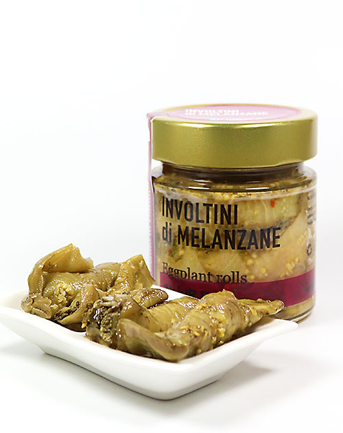 Die Involti di Melanzane sind eine ganz typische italienische Antipasto. Es gibt zahllose Rezepte dieser Vorspeise bis zur Involti al forno, die im Ofen gebacken wird. Diese köstlichen Auberginen-Röllchen aus Kalabrien werden nach einem alten Rezept von Hand mit Sardellen, Knoblauch und Kräutern gefüllt. Akribisch und präzise werden sie von Hand gerollt und erhalten so ihre appetitliche Form. Anschließend kommen Sie mit einer Marinade aus nativen Olivenöl extra, Essig und Gewürzen ins Glas. Selbstverständlich ist das verwendete Olivenöl typisch für die Reggio Calabria und entsteht aus den autochthonen Sorten Nocellara und Carolea.