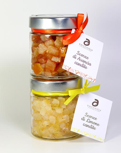 Kandierte Orangen- und Zitronenschalen aus Sizilien – Scorze di Arancia e Limone candite 2x150g
