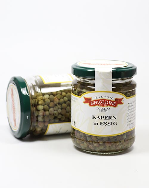 Die Herkunft der Kapern darf ohne Zahlung einer “Lizenzgebühr” für I.G.P.-Produkte in Höhe von 2,- €/Glas nicht mehr auf dem Etikett angegeben werden. Da dies für einen kleinen Betrieb wie die Ölmühle Ghiglione in Dolcedo viel zu teuer ist, verzichtet der Hersteller auf die Angabe auf dem Etikett. Er versichert uns jedoch, dass nach wie vor nur beste Kapern aus Pantelleria ins Glas kommen.