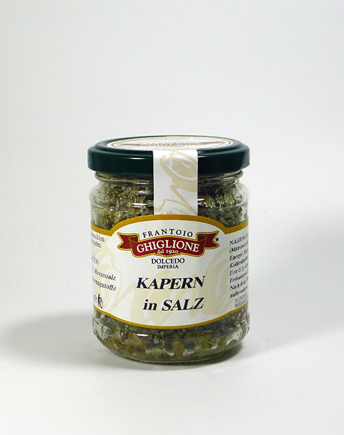 Diese kleinen, aromatischen Kapernknospen von der Vulkaninsel Pantelleria konserviert die familiengeführten Ölmühle Ghiglione schon seit Generationen in Meersalz. So bewahren sie ihr feines, besonderes Aroma. Nachdem sie vom Salz befreit sind, entfalten die Blütenknospen ihr volles erstklassisches Aroma. Die Insel Pantelleria ist durch ihr besonderes Klima für die Besten Kapern bekannt. Die eingelegten Kapernknospen von Frantoio Ghiglione haben einen ganz ausgezeichneten Geschmack! Tipp und Verwendung Da die kleinen Kapernknospen in Salz konserviert sind – so bewahren sie ihr tolles Aroma am besten – empfehlen wir Ihnen, das Salz vor der Verwendung abzuspülen und sie eine zeitlang zu wässern. Kapern spielen in der mediterranen Küche seit jeher eine große Rolle. Angefangen beim Brotaufstrich zum Aperitif über die Zutat zu Pastagerichten bis zur Beilage. Ganz hervorragend passen diese Kapern beispielsweise zu Thunfisch, auf Pizza, über Salat oder in eine Tomatensoße. Die Insel Pantelleria Die kleine Vulkaninsel Pantelleria liegt etwa 100 km südlich vor Sizilien, inmitten der Straße von Sizilien. Man sagt, von hier kämen die besten Kapern der Welt! Aufgrund der exponierten Lage der Insel herrscht dort ein subtropisches Klima – perfekte Bedingungen für die Kapernpflanze! Die Luft ist immer feucht und salzhaltig. Das lieben die Kapernsträucher und danken es mit einer äußerst schmackhaften Frucht. Die eingelegten Kapernknospen von Frantoio Ghiglione haben einen ganz ausgezeichneten Geschmack! Zutaten: Kapern (80%) Salz Füllmenge: 180g Ohne Konservierungsstoffe Kühl und Trocken lagern. Nach dem Öffnen im Kühlschrank aufbewahren. HINWEIS ZUR HERKUNFT DER KAPERN Die Herkunft der Kapern darf ohne Zahlung einer “Lizenzgebühr” für I.G.P.-Produkte in Höhe von 2,- €/Glas nicht mehr auf dem Etikett angegeben werden. Da dies für einen kleinen Betrieb wie die Ölmühle Ghiglione in Dolcedo viel zu teuer ist, verzichtet der Hersteller auf die Angabe auf dem Etikett. Er versichert uns jedoch, dass nach wie vor nur beste Kapern aus Pantelleria ins Glas kommen. Frantoio Ghiglione – Ölmühle im Prinotal (Ligurien) Eine Präsentation des Herstellers Frantoio Ghiglione finden Sie hier: Bitte klicken Sie hier.