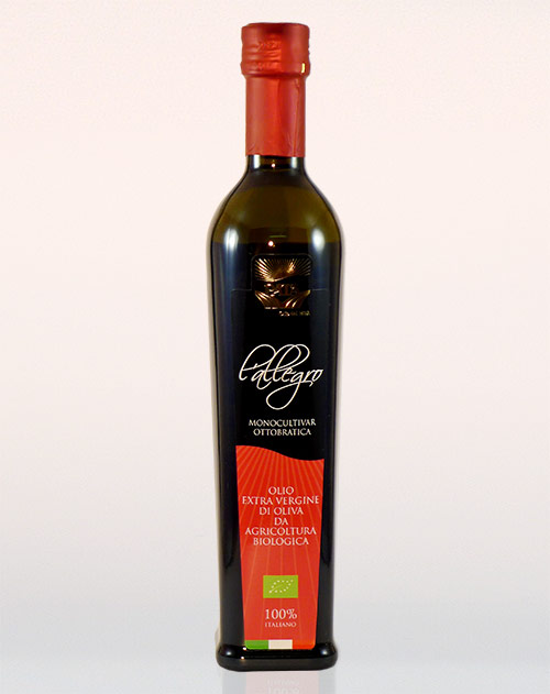 Pata L’Allegro (= das Vergnügte) natives Olivenöl Extra ist ein sortenrein gewonnenes Olivenöl aus der lokalen Olivensorte Ottobratica. Den Namen Ottobratica trägt diese Olive ganz einfach deshalb, weil sie im Oktober reif wird. Und tatsächlich handelt es sich um die Sorte, welche bei der Ölmühle Pata zuerst geerntet wird. Die Ottobratica ist eine ursprüngliche Sorte der Region, sie macht deshalb auch den Hauptanteil der Produktion der Ölmühle aus.