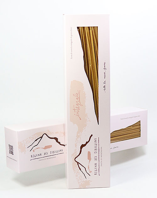 Die “Azienda Regina dei Sibillini” produziert Nudeln nach handwerklichem Verfahren: die Pasta wird durch Bronze gezogen und dann bei niedrigen Temperaturen schonend getrocknet. Es wird nur Weizen verwendet, der in Höhen von 600 bis 900 m Meereshöhe in Mitten des Nationalparks Monti Sibillini angebaut wurde.