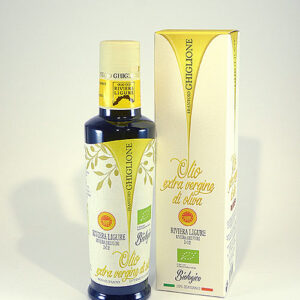 Sehr hochwertiges natives Bio-Olivenöl extra von der ligurischen Riviera – Blumenriviera – unfiltriert mit geschützter Ursprungsbezeichnung (D.O.P)