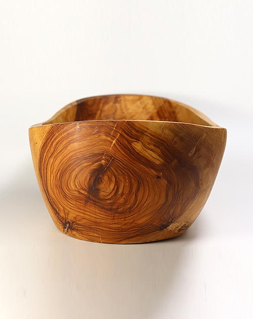 Das Holz selbst ist von hoher Qualität und wird mindestens vier bis fünf Jahre lang abgelagert, um es gründlich trocknen zu lassen. Die Maserung des Olivenholzes ist unvergleichlich und einzigartig in seiner Art. Jedes Stück wird gleich nach seiner Erschaffung mit Sonnenblumenöl eingeölt, um es vor Wasser und Gerüchen zu schützen.