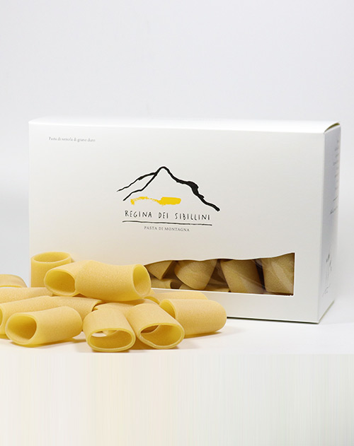 Die “Azienda Regina dei Sibillini” produziert Nudeln nach handwerklichem Verfahren: die Pasta wird durch Bronze gezogen und dann bei niedrigen Temperaturen schonend getrocknet. Es wird nur Weizen verwendet, der in Höhen von 600 bis 900 m Meereshöhe in Mitten des Nationalparks Monti Sibillini angebaut wurde.