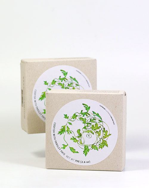 Kabeljau-Paté mit Kichererbsen und Petersilie.