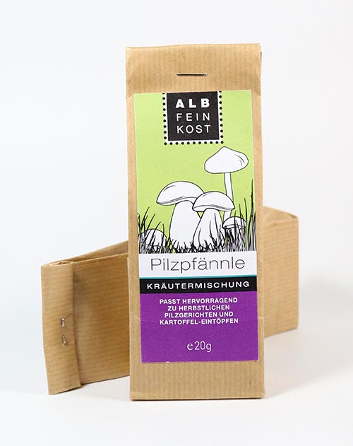 Die Kräutermischung “Pilzpfännle” von der Manufaktur Albfeinkost im Biospährengebiet Schwäbische Alb ist extra abgestimmt auf herbstliche Pilzgerichte. Sie passt aber auch sehr gut zu Kartoffel-Eintöpfen, Ragout vom Huhn oder zu hellen Soßen.