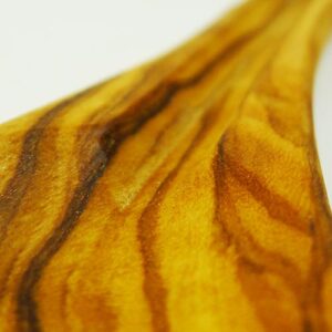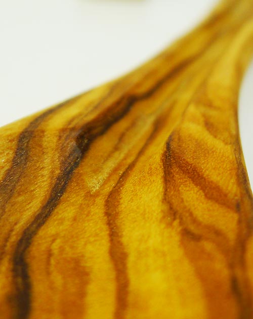 Das verarbeitete Olivenholz ist von sehr hoher Qualität und wird mindestens vier bis fünf Jahre lang abgelagert, um es gründlich trocknen zu lassen. Die Maserung des Olivenholzes ist unvergleichlich und einzigartig in seiner Art. Jedes Stück wird gleich nach seiner Erschaffung mit Sonnenblumenöl eingeölt, um es vor Wasser und Gerüchen zu schützen.