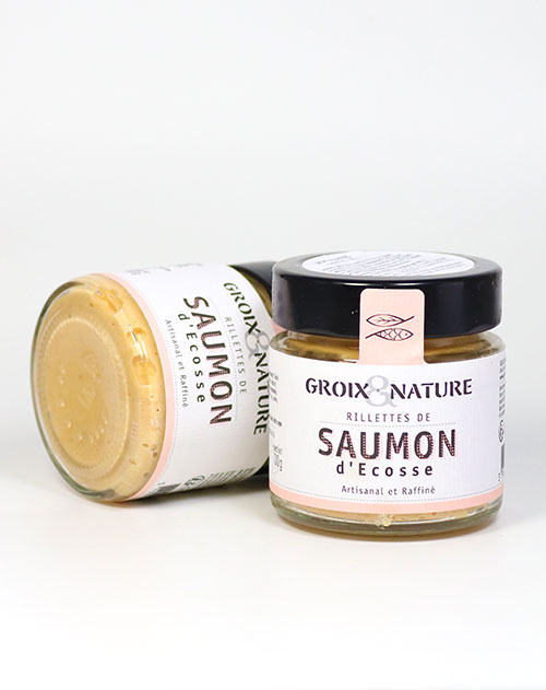 Entdecken Sie ein großzügiges, delikates Lachs-Rillettes mit einem sehr hohen Lachs- und Räucherlachs-Anteil von über 60%. Schön rosa und duftend passt das feine, cremige Rillettes perfekt zu heißen Blinis, begleitet von einem leicht gesäuerten Salat oder einfach mit etwas frisch gebackenem Baguette und dazu einen schönen frischen Chablis oder einen Chardonnay.