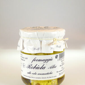 Der Robiola d´Alba ist eine typische Käsespezialität aus der Provinz Cuneo (Piemont). Der aus Kuhmilch hergestellte Käse wird in Würfel geschnitten, gewürzt und in einem Glas mit bestem Olivenöl eingelegt. Unser Formaggio Robiola d´Alba all herbe aromatice mit Kräutern passt hervorragend zu Vorspeisen, Hauptgerichten und zur traditionellen, mediterranen Käseplatte nach dem Essen.