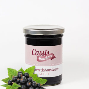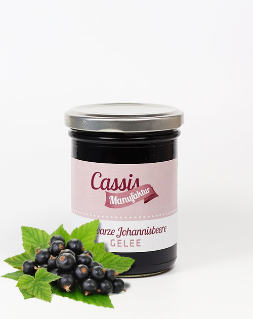 Im schöner Zabergäu stellt die “Cassis”-Manufaktur aus schwarzen Johannisbeeren ein mehr als fruchtiges Gelee her. Auch zum Backen, füllen von kleinen Törtchen oder Gebäck wie auch zum Verfeinern von Soßen ist das Schwarze Johannisbeer-Fruchtaufstrich mit 60g Frucht je 100g ein Traum. Besonders köstlich zu Wildgerichten.