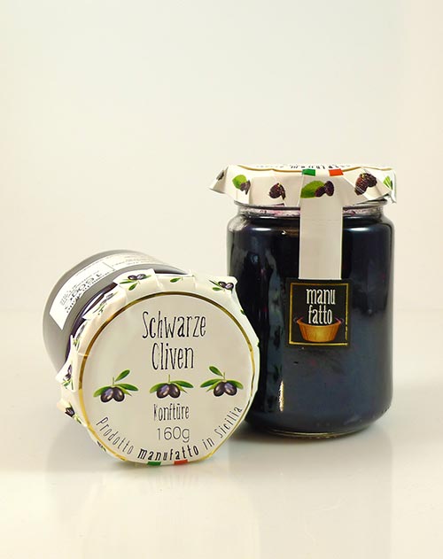 Schwarze Oliven-Konfitüre mit kandierten Oliven aus Sizilien