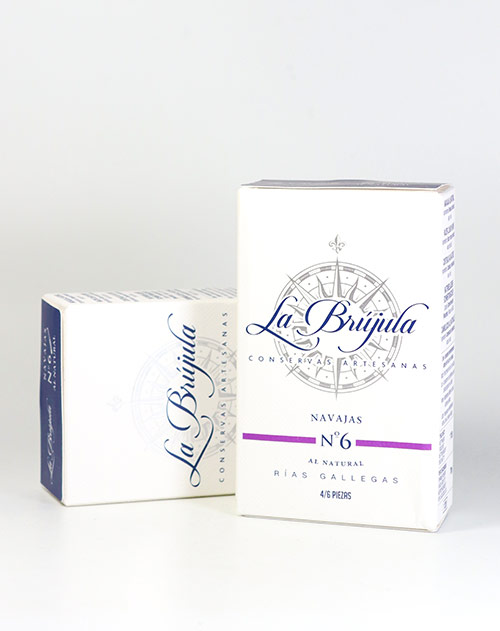 Die von Conservas La Brújula eingelegten natürlichen Schwertmuscheln werden einzeln auf den galicischen Fischmärkten ausgewählt und immer in der Saison gekauft.