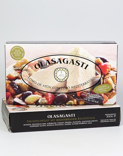 Genießen Sie Thunfisch-Lende in einer guten Handvoll in Olivenöl gegartem mediterranem Gemüse, wie Kapern und Auberginen, mit einem ein Hauch von Essig. Ein Geschmack, der Sie in den siebten Aromenhimmel aufsteigen lässt. Wir haben es mit Couscous probiert und es ist fantastisch. Ein Rezept aus dem Kochbuch von Mamma Pinetta. Am besten erwärmen Sie den Inhalt der Dose bei mittlerer Hitze in einer Pfanne oder Sie können die Dose auch im Wasserbad erwärmen.