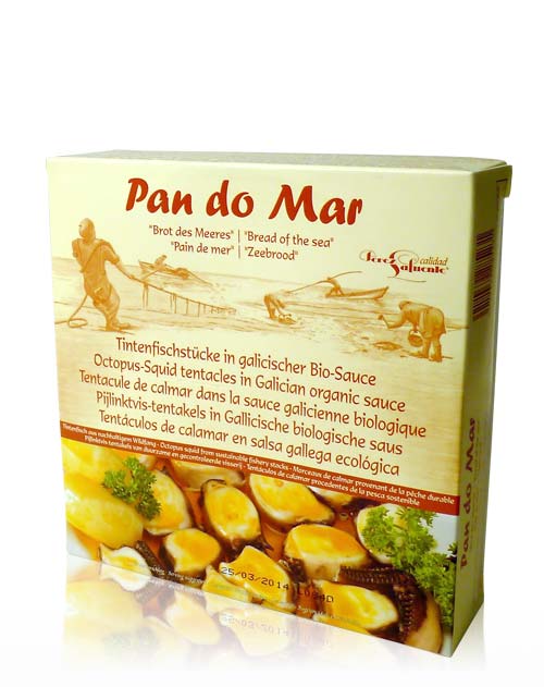 Diese Köstlichkeit von “Pan do Mar” (Brot der Meere) besteht aus den sehr schmackhaften Fangarmen der Kalmare (Wildfang). Diese werden auf traditionelle Art von einheimischen Fischern vor der peruanischen Pazifikküste gefangen. Gegart und in typischer galicischer Sauce aus spanischem nativem Olivenöl, Paprika, Knoblauch und Gewürzen aus kontrolliert biologischem Anbau eingelegt, entsteht eine wunderbare, mediterrane Köstlichkeit.