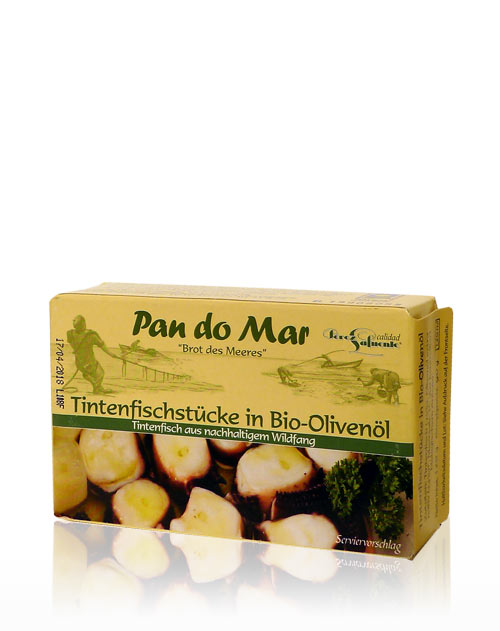 Diese Köstlichkeit von “Pan do Mar” (Brot der Meere) besteht aus den sehr schmackhaften Fangarmen der Kalmare (Wildfang). Diese werden auf traditionelle Art von einheimischen Fischern vor der peruanischen Pazifikküste gefangen. Gegart und in spanischem nativem Olivenöl aus kontrolliert biologischem Anbau eingelegt, entsteht eine wunderbare, mediterrane Köstlichkeit.