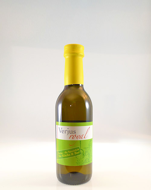 Verjus royal ist ein alkoholfreies Würzmittel aus Weintrauben ohne jeden Zusatz. Deshalb schmeckt Verjus auch sauer. Und das soll er auch, denn er dient zum zarten Ansäuern von Speisen und Getränken. Seine Säure ist aber keineswegs hart und ätzend, vielmehr fruchtig und fein. Einfach eine tolle Alternative zu Zitrone oder Essig, nur milder und feiner als Zitrone.